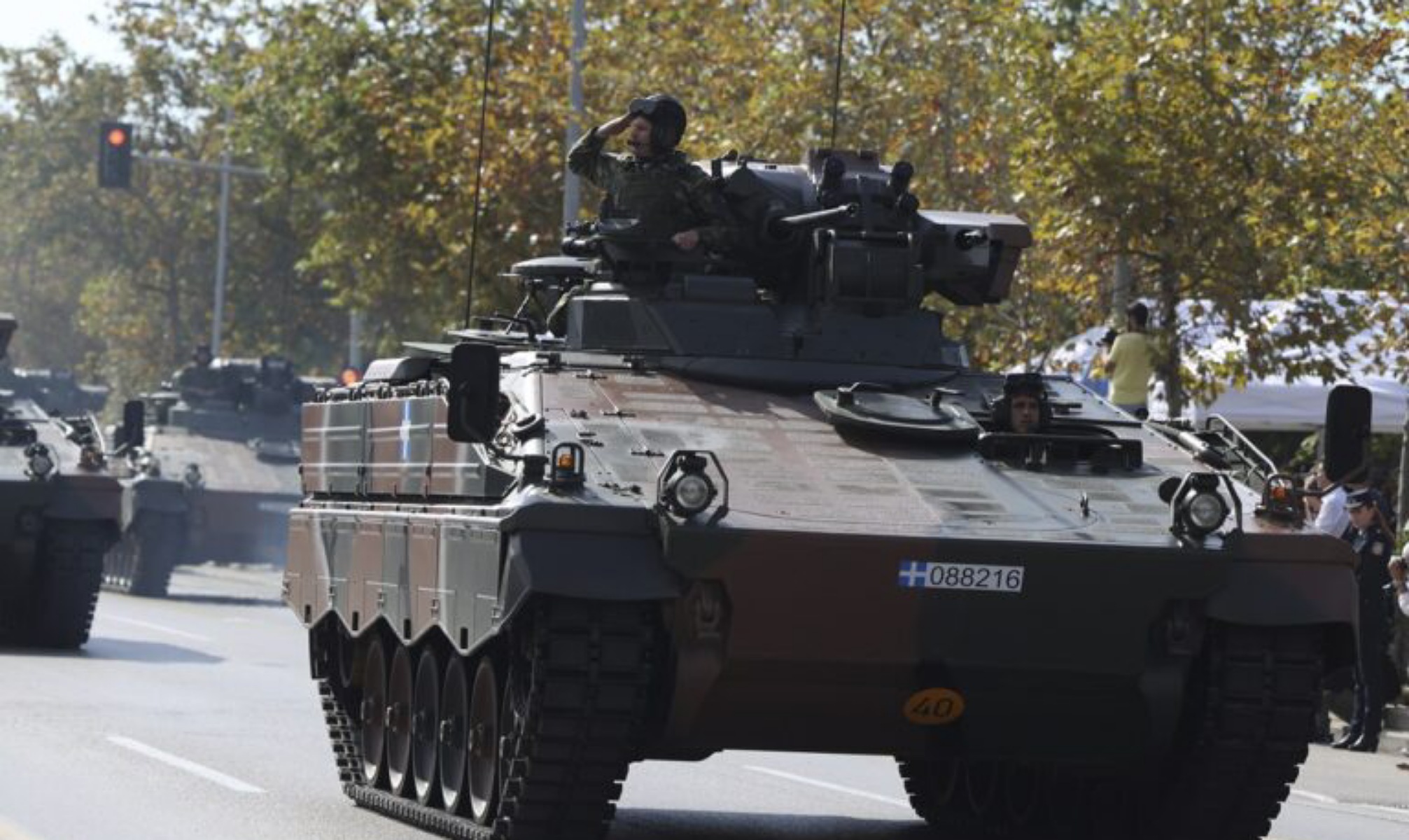 Σε επίπεδο αρμάτων μάχης, θα έχουμε τη δυνατότητα να δούμε άρματα Leopard του Στρατού Ξηράς εξοπλισμένα με ειδικά «κλουβιά» που τα προστατεύουν απέναντι σε ενδεχόμενα χτυπήματα στον πύργο του άρματος.