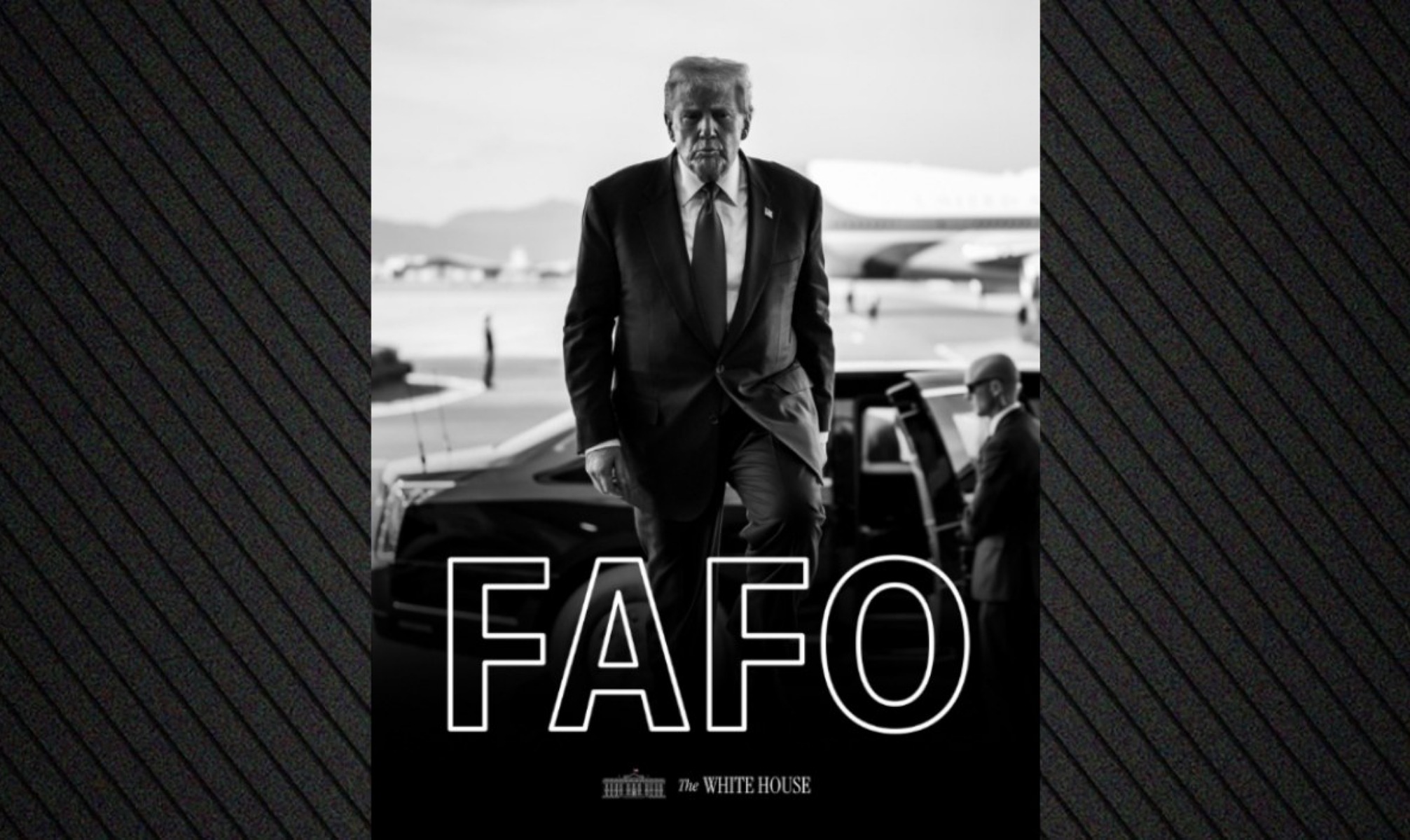 Στην ανάρτηση που συνοδεύει τη φωτογραφία γράφει επίσης «δεν παίζουμε». Το ακρωνύμιο «FAFO» στα ελληνικά αποδίδεται ως «Κάνε μ@@@@@@@ και θα δεις τι θα πάθεις» και χρησιμεύει ως προειδοποίηση ότι η απερίσκεπτη ή προκλητική συμπεριφορά θα οδηγήσει σε άμεσες, συχνά αρνητικές, συνέπειες.