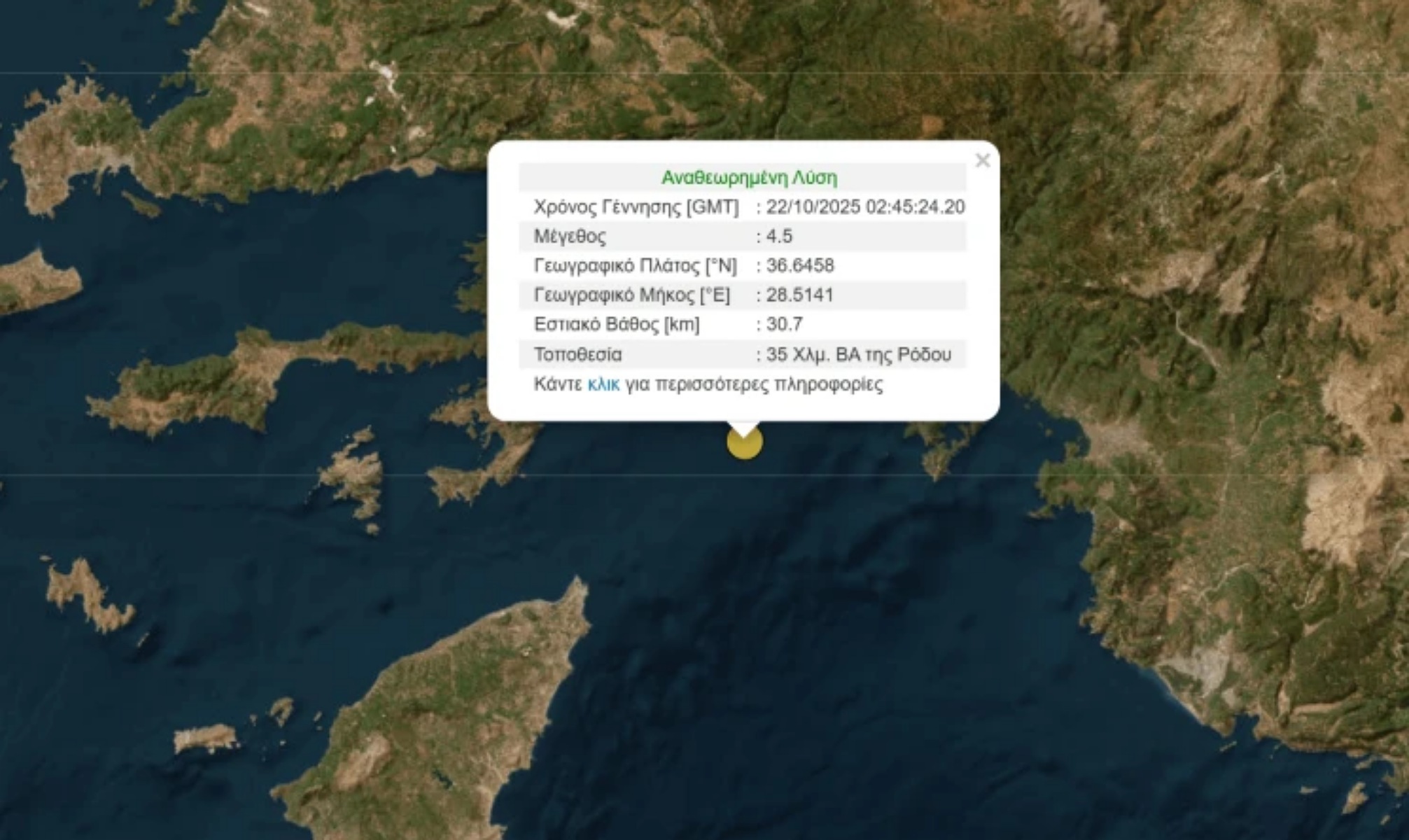 Ο σεισμός σημειώθηκε στον θαλάσσιο χώρο μεταξύ της πόλης Ρόδου και της Μαρμαρίδος και έγινε ιδιαίτερα αισθητός από τους κατοίκους της περιοχής.
