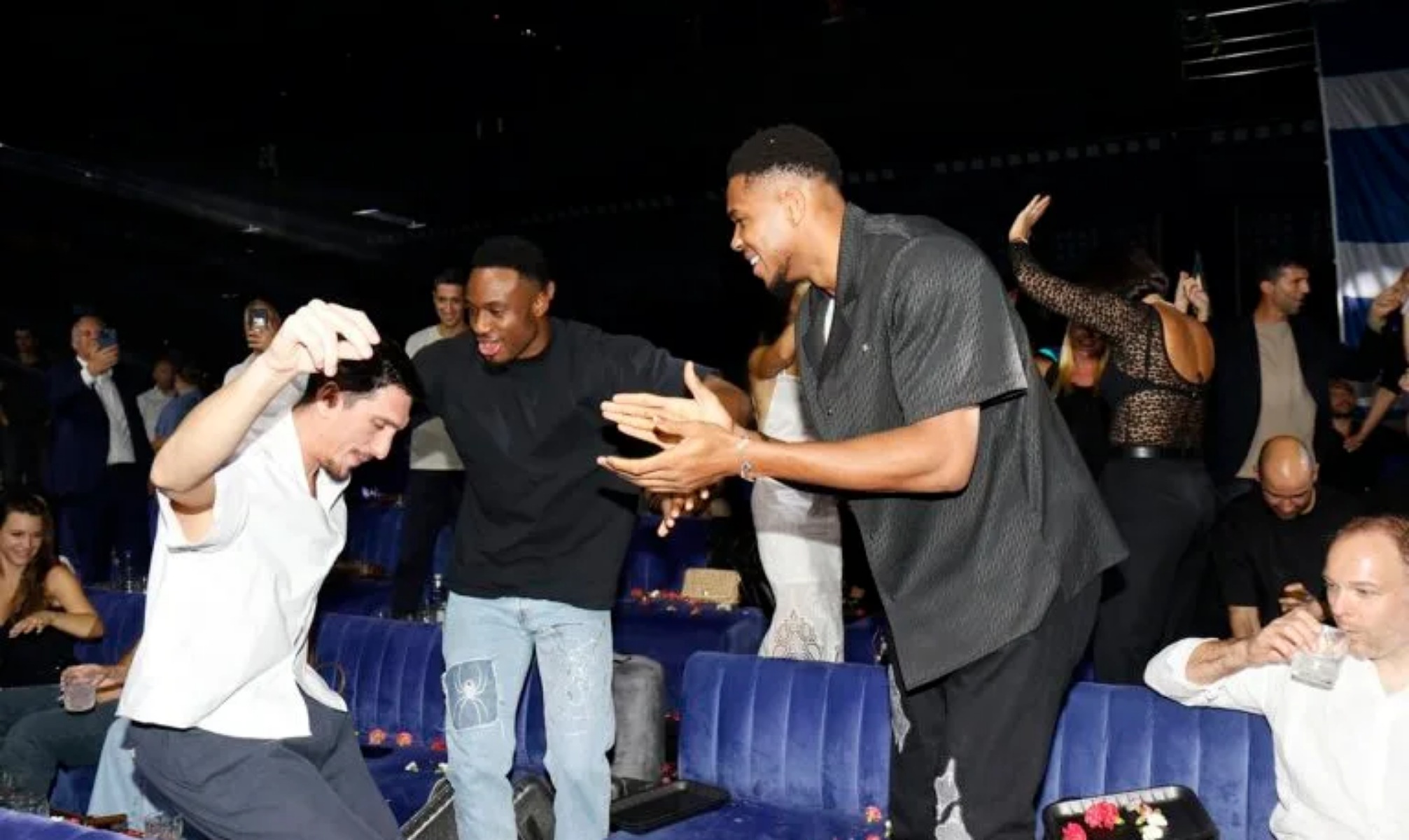 Γιάννης και Θανάσης Αντετοκούνμπο, Κώστας Παπανικολάου, Γιαννούλης Λαρεντζάκης, Δημήτρης Κατσίβελης αλλά και ο Βασίλης Σπανούλης με τον πρόεδρο της ΕΟΚ, Βαγγέλη Λιόλιο, βρέθηκαν, μεταξύ άλλων, στο Ποσειδώνιο για να πανηγυρίσουν με τα τραγούδια του Θοδωρή Φέρρη την επιστροφή της Εθνικής Μπάσκετ στο βάθρο μετά από 16 χρόνια.