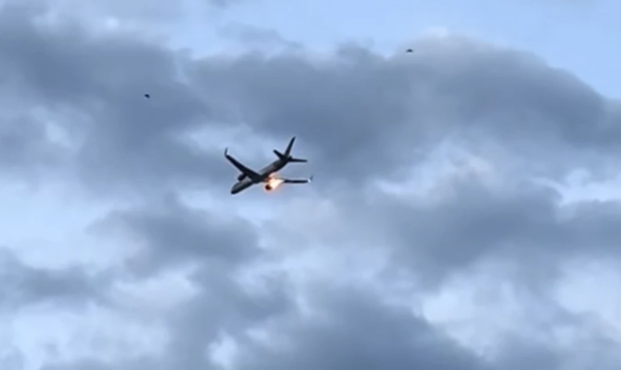 Στο οπτικό υλικό φαίνεται το Boeing 757 στη φάση ανόδου, με τις λάμψεις από τις εκρήξεις να γίνονται ορατές, ενώ ακούγεται και ο έντονος θόρυβος που προκάλεσαν. Στη συνέχεια το αεροπλάνο στρέφει δεξιά, την ώρα που καπνός βγαίνει από τον κινητήρα.