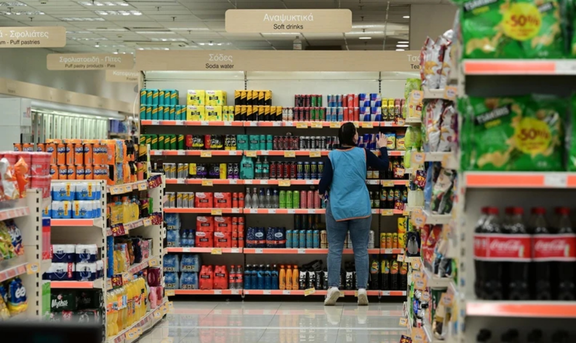 Συνολικά, ο δείκτης τροφίμων, αλκοόλ και καπνού αυξήθηκε κατά 4,1% στην Ελλάδα, έναντι 2,6% στην Ευρωζώνη. Αν και οι τιμές των επεξεργασμένων τροφίμων παρέμειναν σταθερές τον Φεβρουάριο, δεν κατάφεραν να αντισταθμίσουν το κύμα ανατιμήσεων στα βασικά προϊόντα. Παράλληλα, τα μη ενεργειακά βιομηχανικά αγαθά αυξήθηκαν κατά 1,7%, υπερδιπλάσια σε σχέση με τον μέσο όρο της Ευρωζώνης.