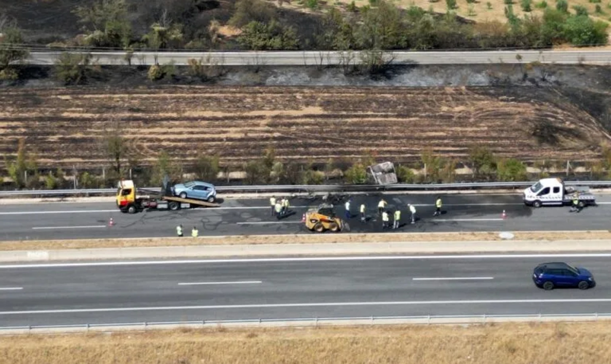 Σύμφωνα με μαρτυρίες, το ένα από τα δύο ΙΧ ακινητοποιήθηκε ξαφνικά στη μέση του δρόμου, για άγνωστους μέχρι στιγμής λόγους. Το φορτηγό που ακολουθούσε προσέκρουσε με μεγάλη ταχύτητα στο πίσω όχημα, το οποίο εγκλωβίστηκε και τυλίχθηκε αμέσως στις φλόγες.